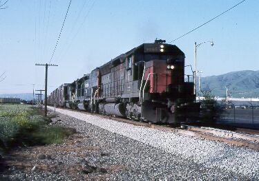 ![]() SP Extra 7787 West rolls geographical north through Milpitas on its way to Oakland on March 23, 1985. (Both Photos by Ken Rattenne) |