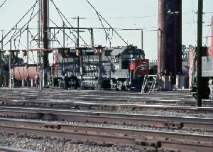 into stalls 1 and 2 are a pair of Amtrak P30CHs on lease to SP to help