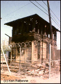"...a sad day for San Jose railroad historians." SAN JOSE, CA On the evening of March 31, 1996, fire broke out in the second story of San Jose's College Park Tower. Flames completely gutted the inside of the building, destroying any hope of saving and removing the structure to a proposed site of for a San Jose railroad museum at the Santa Clara County Fairgrounds. Cause of the fire was not immediately known but it is