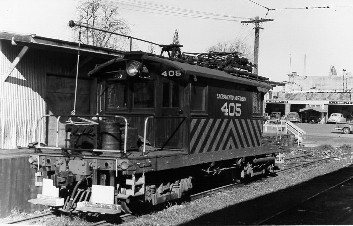 this portrait of Sacramento Northern motor 405 it rests near downtown Oroville