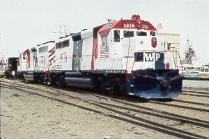 In early 1976 America's Class 1 railroads had Bicentennial Fever, painting one or more diesels in some form of red, white and blue paint scheme. Western Pacific was not to be left out and chose two units to represent the company as Bicentennial flagships.