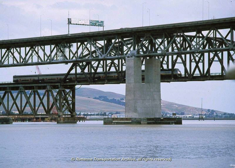 ![]() A Capitol Corridor train with CDTX 2011 in the lead, trundles across the Carquinez Straits just before arriving at Martinez on April 28, 2002. |