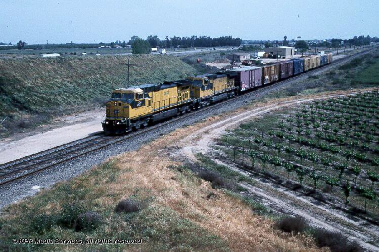 Today, however, the units are a common site. At least in the Central Valley of California. Now part of the massive Union Pacific system former C&NW units can be seen plying the ex-Southern Pacific tracks of the so-called "I-5 Corridor."  Witness the photos on this page.