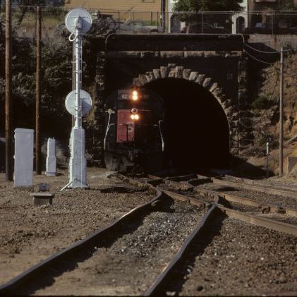 railroad east after exiting the last tunnel on the commute line. |