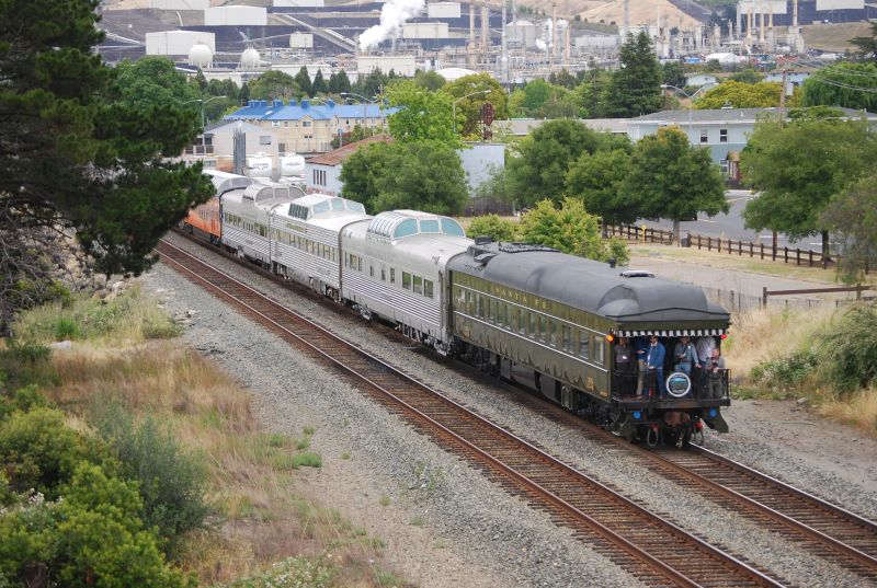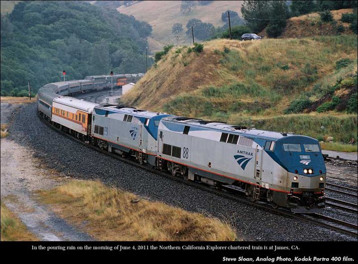 By Don C. DouglasFriday June 3, 2011 The Northern California Explorer excursion train rolled out of Amtrak'S Emeryville station under cloudy skies at 2:08 p.m., eight minutes late. Jointly sponsored by Central Coast Railway Club and Trains & Travel International, the three-day excursion would run over Union Pacific and Burlington Northern Santa Fe trackage through the Feather River Canyon and the Inside Gateway to Klamath Falls, returning via the UP Shasta Route to the Bay Area. The consist was: AMTK