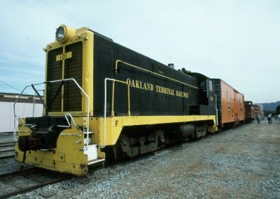 The Oakland Terminal Railway is a little known switching line operating in the backwaters of the Bay Area in relative obscurity in West Oakland. The Oakland Terminal Railway was the freight switching operation of the old Key System, which operated the streetcar lines in the East Bay and provided transportation between the East Bay and San Francisco. The Western Pacific and the Santa Fe acquired the company jointly in 1943. Oakland Terminal Railway had a direct connection with Santa Fe near the Southern Pacific 16th Street Station in Oakland. Connections with the Western Pacific were made via trackage rights over the Key System from Emeryville to the Sacramento Northern terminal at 40th and Shafter streets in Oakland. Sacramento Northern's electric freight motors were used between Emeryville and 40th and Shafter streets and along electrified portions of OT. Electric switching operations were discontinued on May 1, 1955 when leased SN freight motors 440 and 442 were returned to SN. Oakland Terminal operated one steam locomotive to handle switching duties along the non-electrified portions of the railroad, including the Oakland Army Base. Oakland Terminal 2-6-2 No.4 was built by Baldwin in 1923 for Mt. Shasta Power as their No.4. In October 1943, OT No.4 was sold to Santa Fe and numbered 2447. In August 1944 it was sold to Modesto & Empire Traction Company and renumbered M&ET 9. The locomotive was sold for scrap in April 1952. In 1948 OT purchased its first diesel, Baldwin DS-44-1000 No.101. In February 1970 the road purchased Tidewater Southern Alco S-1 No. 744, ex-WP No. 554, and renumbered the unit OT No.102. This unit proved underpowered and was retired in February 1974. Baldwin No. 101 was donated to the Pacific Locomotive Association and today OT operates 1500 h.p. GP7 No. 97 and leased GP9R 5623, which is painted and lettered in its original SP black widow paint scheme. In 1957 a new connection was built on Union Street in Oakland to connect