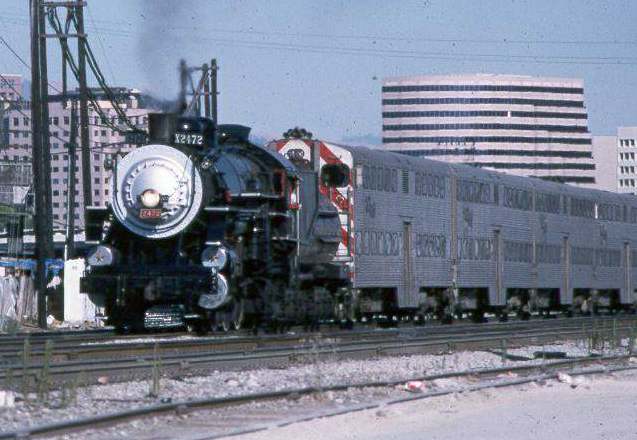 The official end of steam on SP took place on October 19, 1958 when 4-8-4 No.4460 pulled an excursion train from Reno to Oakland. While it has been almost 43 years since steam was assigned to commute trains, Golden Gate Railroad Museum's ex-SP 2472 makes occasional appearances on the line. - end of article |